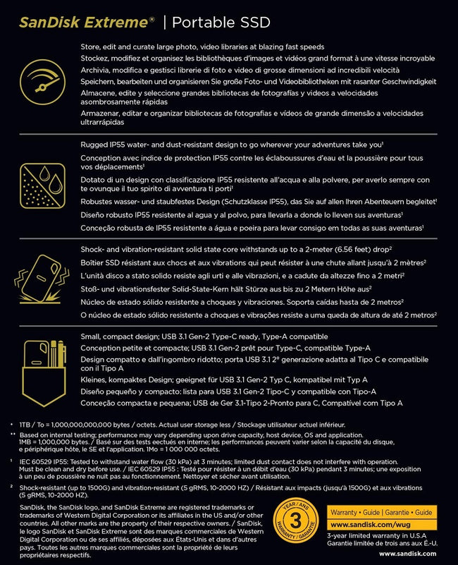 SanDisk SSD Extreme Portable E60 2TB up to 550MB/s Read SanDisk SSD Extreme Portable E60 500GB up to 550MB/s Read SanDisk SSD Extreme Portable E61 1TB up to 1050MB/s Read (SDSSDE61-1T00-G25)