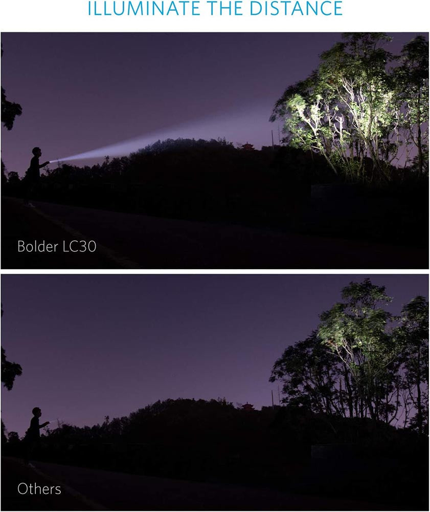 Light the WayUse LC30’s 300 lm to find an object or to shine on a dimly lit road. |