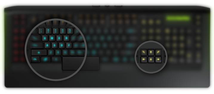 The macro keys above the F-keys feature a raised design that allow you to locate them without looking and execute devastatingly fast key combinations. Simply swipe your finger down from the macro key onto the F-key for quick key combinations.