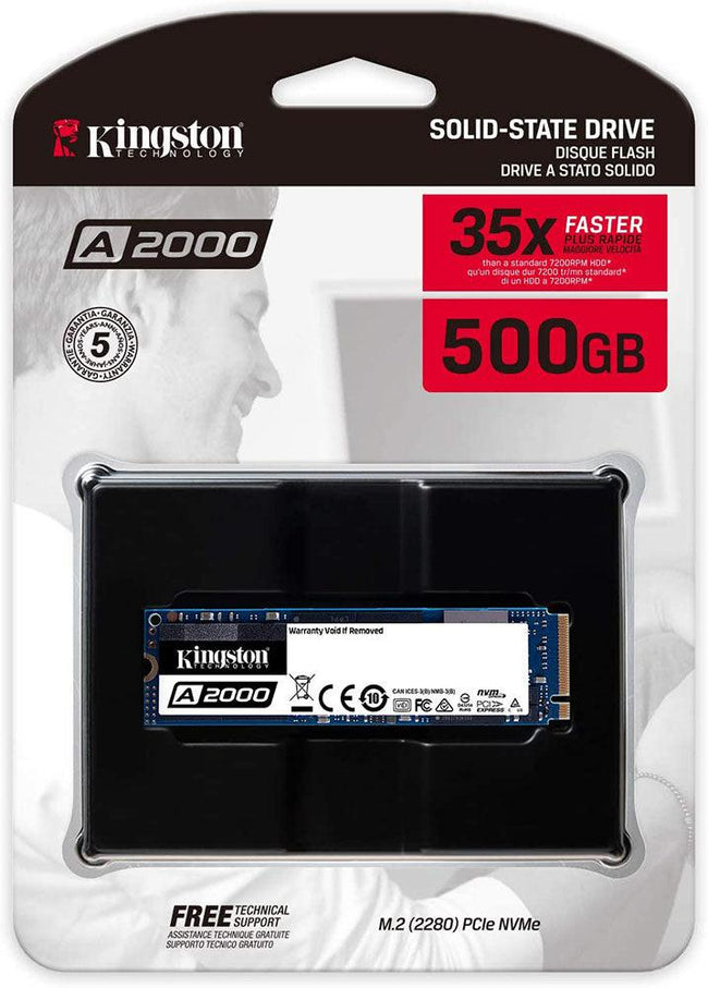 Kingston A2000 500GB NVMe PCIe Gen 3.0 x 4 Lanes Up to 2000MB/S with Full Security Suite SA2000M8/500G