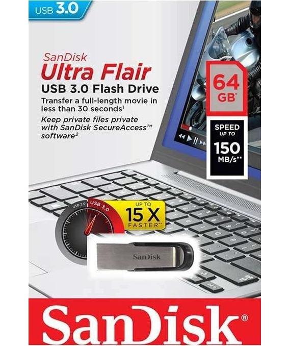Offering transfer speeds of up to 15X faster than standard USB 2.0 drives (1), the SanDisk Ultra Flair USB 3.0 Flash Drive is designed to move your files fast, so you spend less time waiting. For example, you can transfer a full-length movie in less than 30 seconds (3). The drive’s durable and stylish metal casing keeps your important files safe, while the included SanDisk SecureAccess software lets you password-protect and encrypt your sensitive files (4).