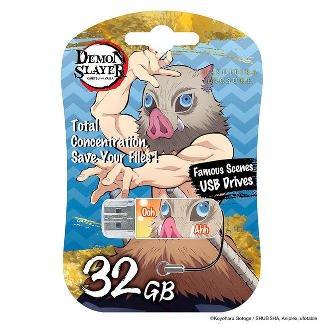 Popular Demon Slayer character Inosuke Hashibira imagery on the front and back of the drive - Total Concentration, Save Your Files! - ©Koyoharu Gotoge / SHUEISHA, Aniplex, ufotable