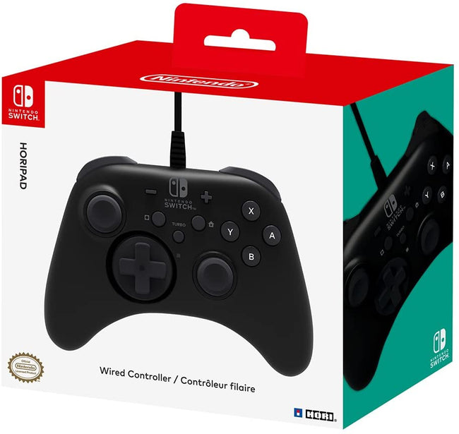Officially licensed by Nintendo. After three decades of innovation as Nintendo's original peripheral licensee, HORI's done it again with the HORIPAD for Nintendo Switch. This sturdy, high-performance controller boasts an array of features including fast-action trigger shoulder buttons, a detachable D-pad adapter, high-precision offset analog sticks, turbo settings and more. Wired functionality provides lightning fast responses and tournament ready performance, while an ergonomic grip and a lightweight profile ensures continued comfort. (Does not include motion control or vibration feedback functions.)
