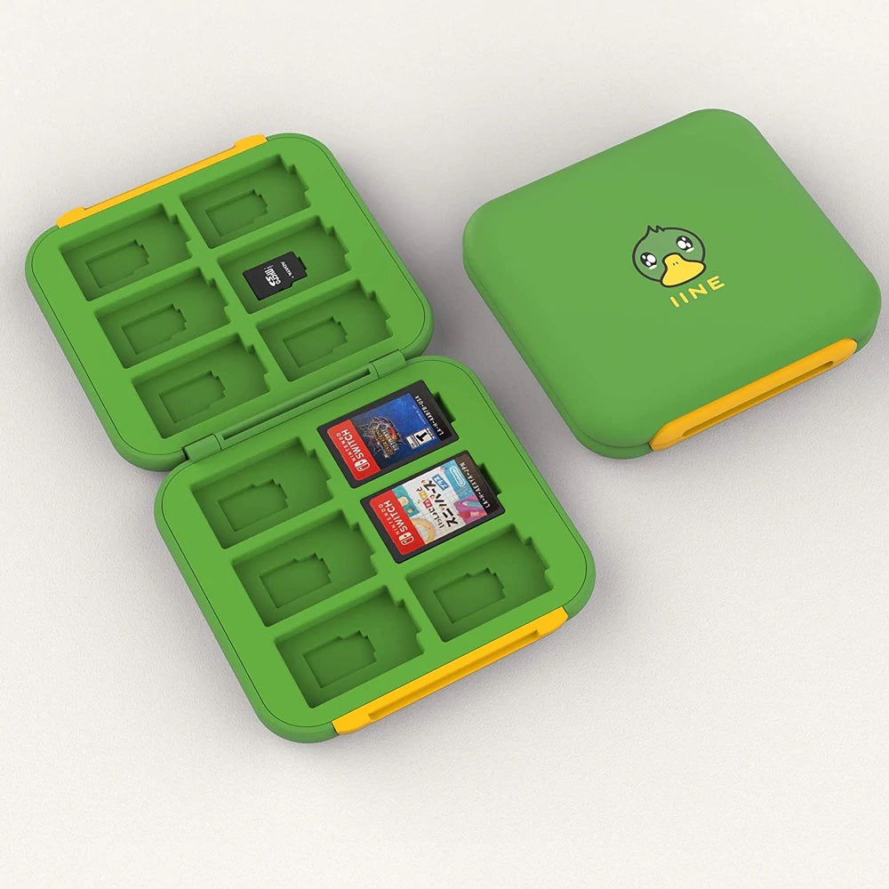 Store your game cartridges in a cutey of a case as IINE NSW Game Card Case 6+6 Magnetic Auto-Close (Green Duck)