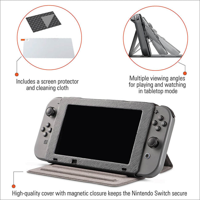 The Hybrid Cover is one of the must have for taking Nintendo Switch on-the-go. The wrap-around design features hidden Velcro and a magnetic closure to keep the Switch secure, by itself or with Joy-Cons attached. Open the cover and display the Switch in 3 different viewing angles during tabletop mode, wherever you go.