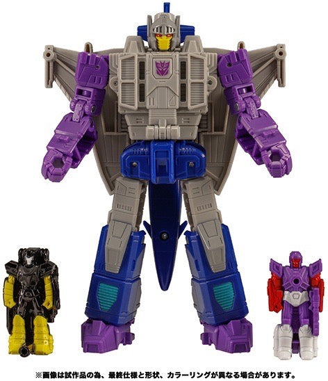 Needle Nose, the Decepticons's double target master aerial soldier, gets a new "Transformers Legacy" action figure from Takara Tomy! He transforms from his robot form to a jet plane; two Target Masters that transform into weapons, Sunbeam and Zigzag, are included too. Sunbeam and Zigzag can be combined into a large weapon using the "EvoFusion" function; they can be equipped as weapons on both wings, and they also serve as speed boosters in vehicle mode. Order yours today!