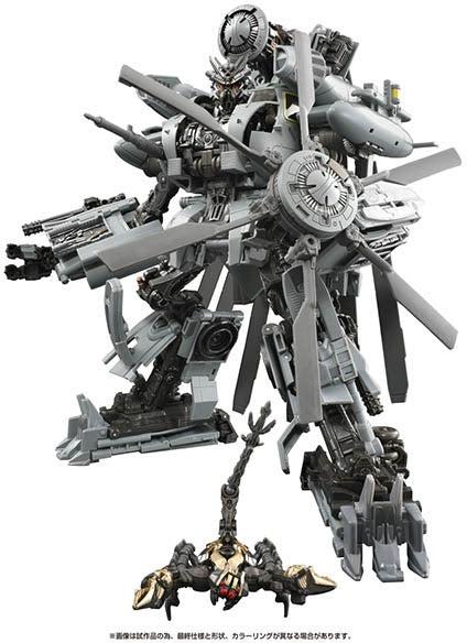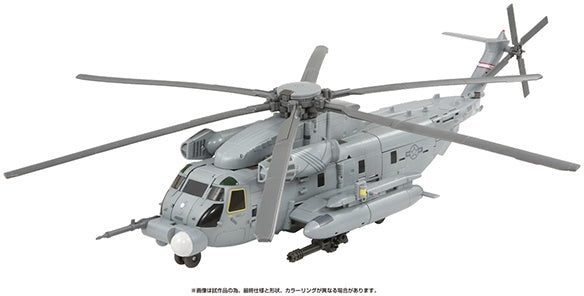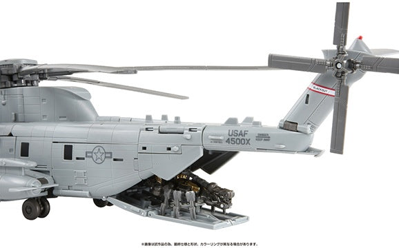 As seen in 2007's "Transformers" live-action film, the Decepticon known as Blackout gets a new MPM (Masterpiece Movie) series figure from Takara Tomy, together with Scorponok! Blackout transforms into a Sikorsky MH-53 combat helicopter, and is an assertive 50cm long in helicopter form! Scorponok can be stored inside Blackout, as seen in the film, and Blackout's weapons such as the Vulcan cannons on his arms, the weapon utilizing the helicopter rotors, and more are included too. Order yours now!