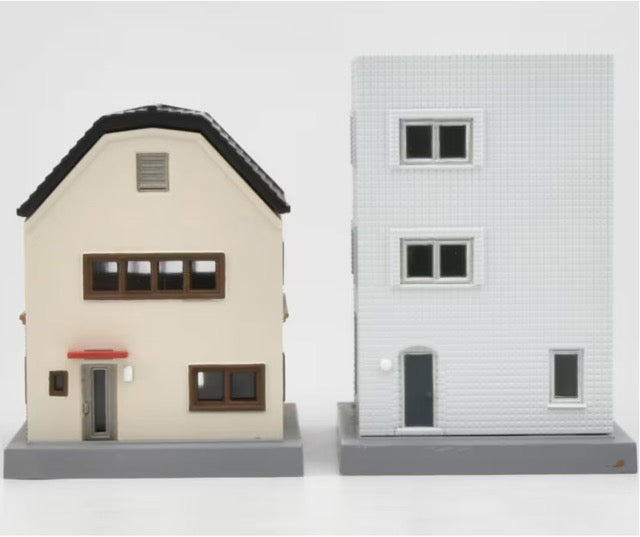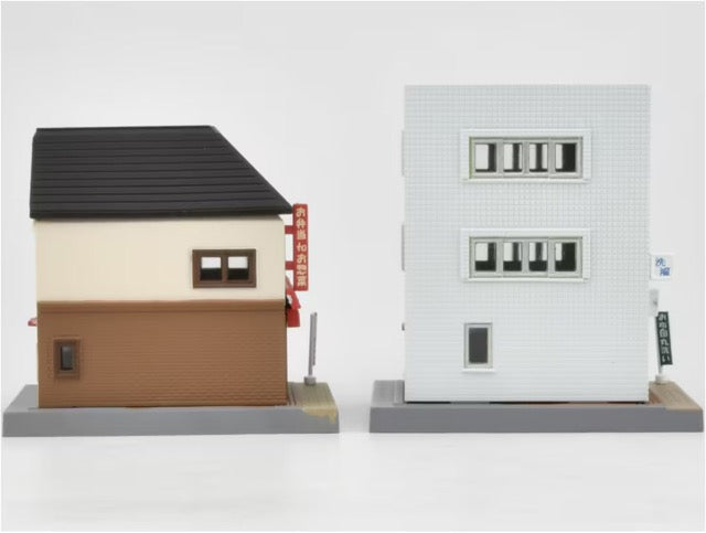 Create a detailed diorama or display with this new set of buildings - a coin laundry and and a Train Station store. These buildings are at 1/150 scale making them ideal for use with model railway dioramas or other similar projects.