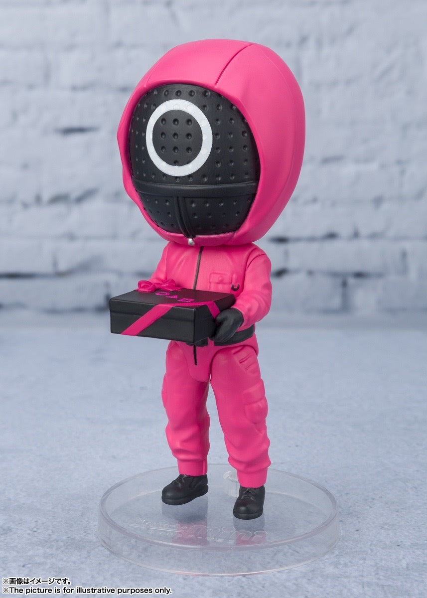 The Masked Worker from "Squid Game" is the newest member of Bandai's Figuarts Mini lineup! He's a compact 9cm tall, super-cute, and comes with interchangeable arm parts. He's posable at the neck, shoulders and legs, too. Order him for your own collection today!