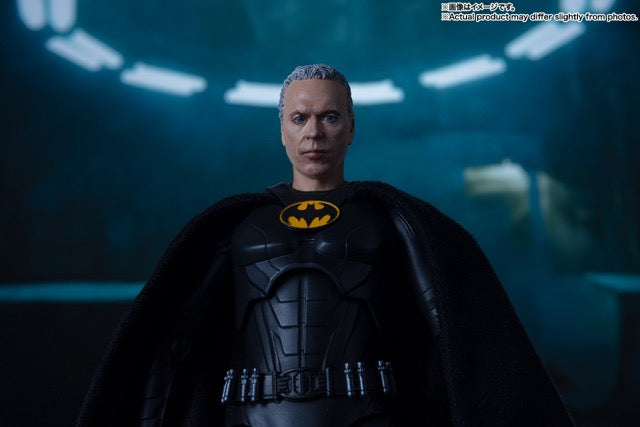 As portrayed by Michael Keaton in the new movie "The Flash," Batman returns to the silver screen -- and also returns to the "S.H.Figuarts" action-figure lineup from Bandai! Batman's stylish modern suit is carefully reproduced; an interchangeable Bruce Wayne head is included, and Batman's cloak is made of fabric with flexible wires for dramatic poses. He can be posed as if in flight thanks to prop parts, and he's fully posable too for maximum action, including Batarang poses! Order this classic hero for your own collection today!