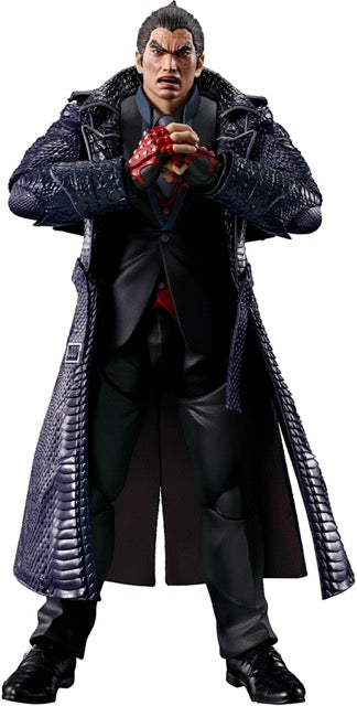 Kazuya Mishima, the "cold-blooded ruler" from the top 3D fighting game "Tekken 8," finally joins the "S.H.Figuarts" action-figure lineup from Bandai! The detailed design of his latest costume is completely reproduced, including his long coat, and he has an incredibly wide range of motion to get into just about any pose from the game! Soft material is used for part of the coat, so it won't interfere with action-packed poses. A background sheet designed after the stages in the game is included too, as are three interchangeable heads with digital coloring for great accuracy to his appearance in the game. Order him for your own collection today!