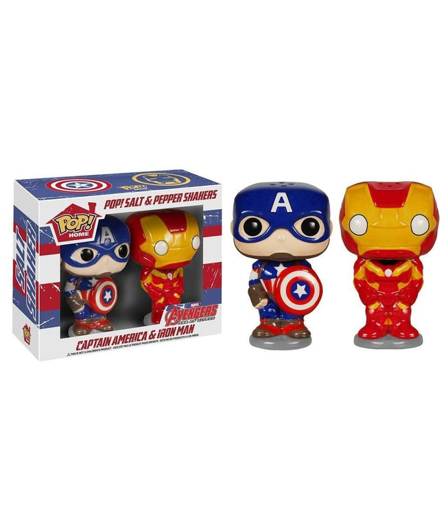 The memorable design of Pop! Vinyl Figures is coming to the kitchen! Whether you display these superheroes or use them to spice up your next meal, the Captain America and Iron Man Pop! Home Salt and Pepper Shaker Set are perfect for any Avengers collection. The Pop! Home Salt and Pepper Shakers are made of ceramic. Each figure measure approximately 4-inches tall. Ages 17 and up.