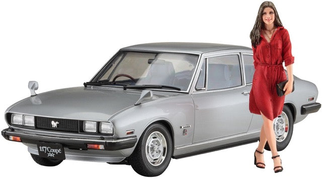 Hasegawa's 1/24-scale model kit of the Isuzu 117 Coupe late model (XE) comes complete with a resin figure kit of a coolly confident woman! Order yours today!