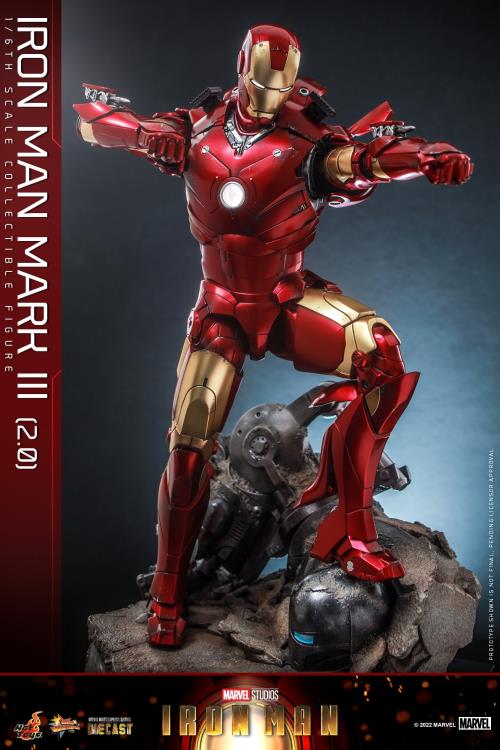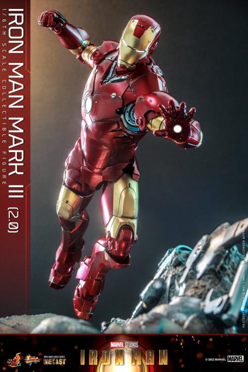 Engineered with great attention to detail, Hot Toys is proud to present the movie-accurate 1/6th scale Iron Man Mark III (2.0) diecast collectible figure demonstrates the exquisite design and armor pieces crafted by Tony in the first Iron Man movie, with a detailed Iron Monger themed diorama base.