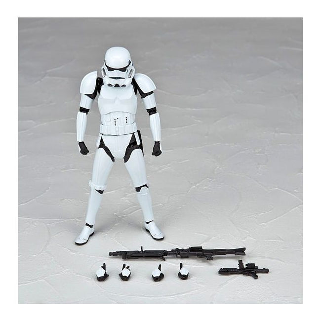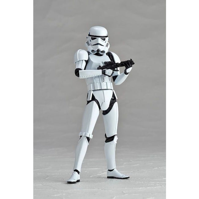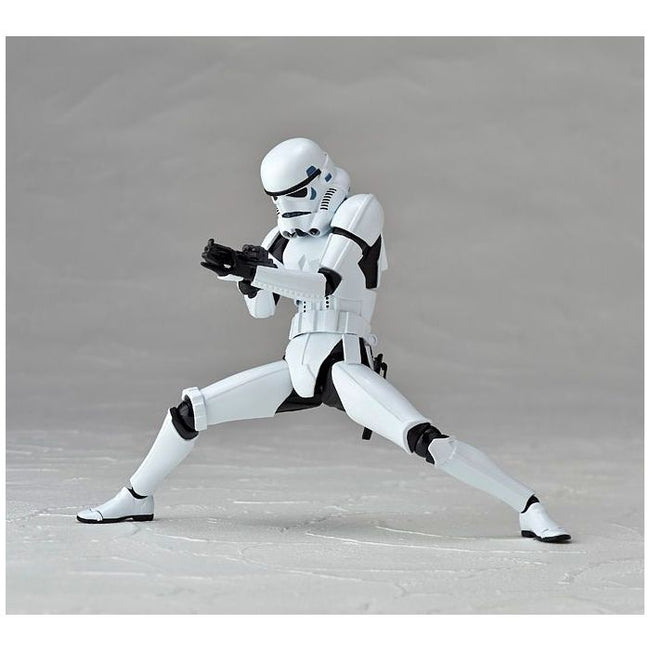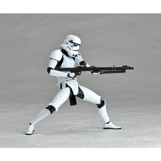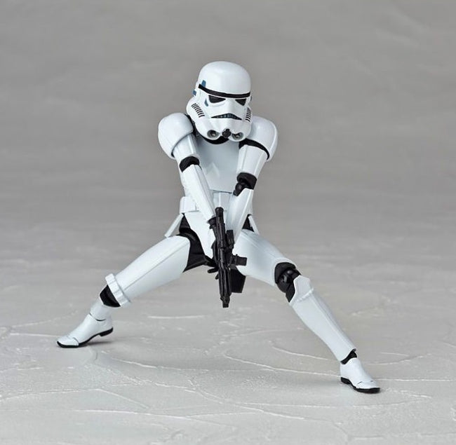 The iconic Stormtrooper from the "Star Wars" franchise gets Revolteched! Standing about 16cm tall, this classic "buckethead" sports 15 points of articulation for amazing posability, and he's equipped with a blaster, blaster rifle, and four interchangeable hands. He also has a clear plastic support rod to help him stand in wide-legged poses. Order several and build your own garrison!