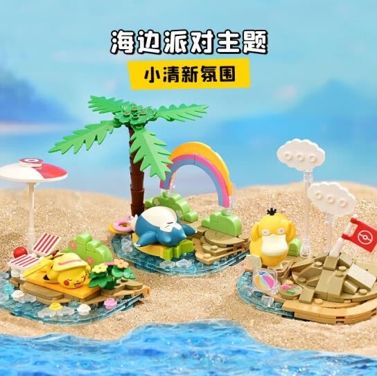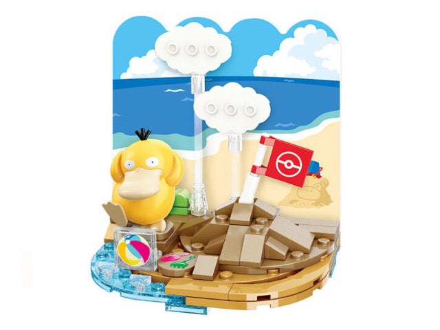Keeppley introduces another series of Pokemon block toy sets, the Holiday Party series, where each cute Pokemon is celebrating their own theme. These block toy sets are easy to assemble and the result is an adorably detailed figure. This set features Psyduck trying to build a sandcastle in a beach-themed display.