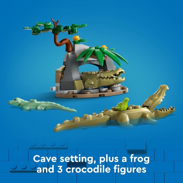 Characters for role play2 explorer minifigures, plus a frog and 3 crocodile figures. |