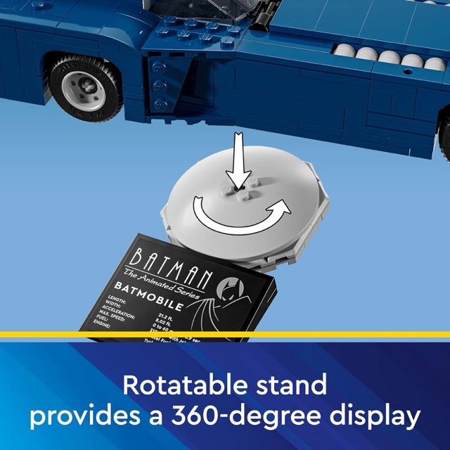 A descriptive plate and rotatable stand ensure your Batmobile looks awesome from all perspectives.
