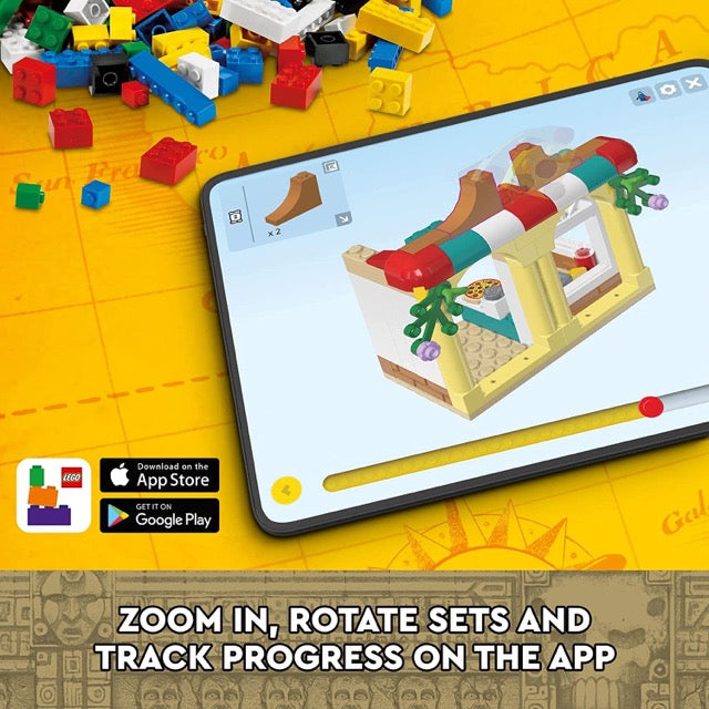 Builders can zoom in and rotate sets in 3D and track their progress using the fun, intuitive LEGO Builder app.