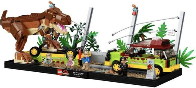 Relive your first sighting of the T. rex in Jurassic Park as you recreate the famous movie scene in LEGO® style.