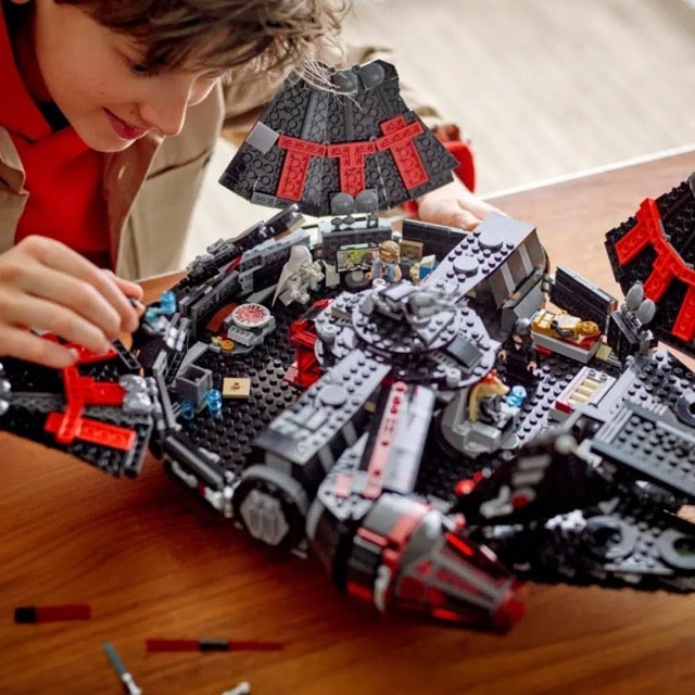 - LEGO® Star Wars™ buildable toy vehicle set for kids – Build The Dark Falcon, a dark version of the Millennium Falcon as seen in the Rebuild the Galaxy Disney+ special, to turn the universe upside down
