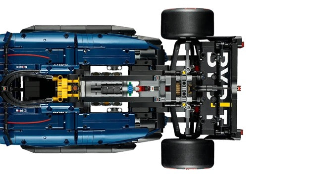 - An F1 racing car model packed with features – Celebrate your love for motorsports as you explore details including front and rear suspension, steering, an adjustable spoiler and printed tires