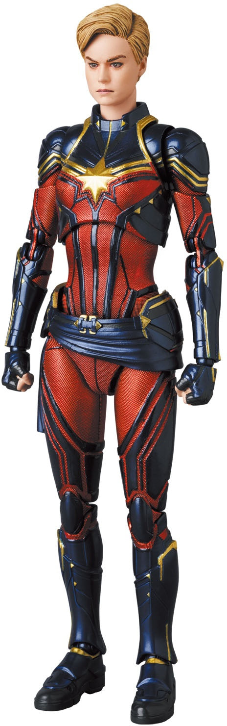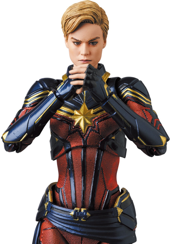 The "Avengers: Endgame" version of Captain Marvel takes the stage in MAFEX's line of amazing action figures! She's come to life in her brand new suit - with special care being taken into the details of the shape and pattern. Two different replaceable heads are included, along with various effect parts and replaceable wrist parts. A movable figure stand is also included, so you can pose her however you'd like! Add her to your collection today!