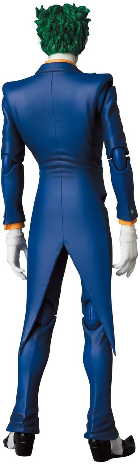 From "Batman: Hush" comes an all-new MAFEX action figure of The Joker himself! Boasting full articulation and a sleek silhouette, his exaggerated and crazed expressions contrast his slim figure in exquisite detail. His jacket is made from a soft plastic, allowing for more flexible and natural poses. Two types of head parts, a knife, and an adjustable figure stands are all included. Add this villain to your collection today!