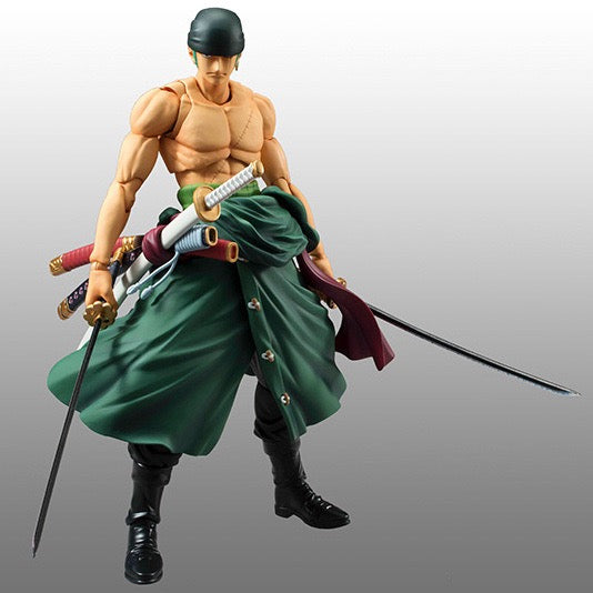 MegaHouse's incredible "Variable Action Heroes" figure of Roronoa Zoro is back! The world's greatest swordsman from "One Piece" comes with his legendary three swords, as well as two interchangeable heads -- one with his black kerchief, and one without. He's amazingly posable for all kinds of fighting scenes, too. Order him for your own collection today!