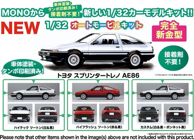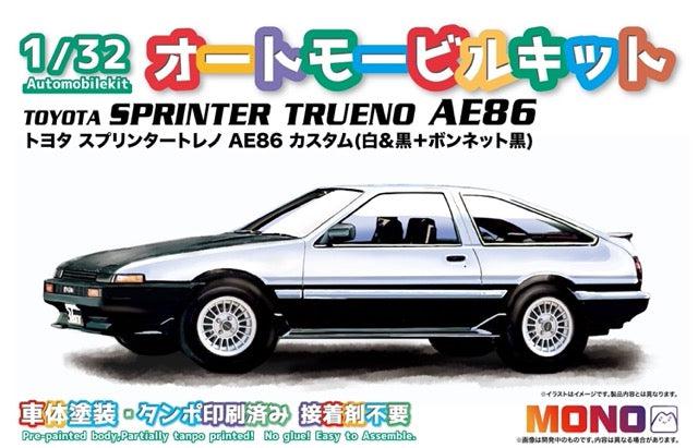 MONO 1/32 Automobile Kit Toyota Sprinter Trueno AE86 Custom (White & Black + Bonnet Black) (Plastic Model Kit)