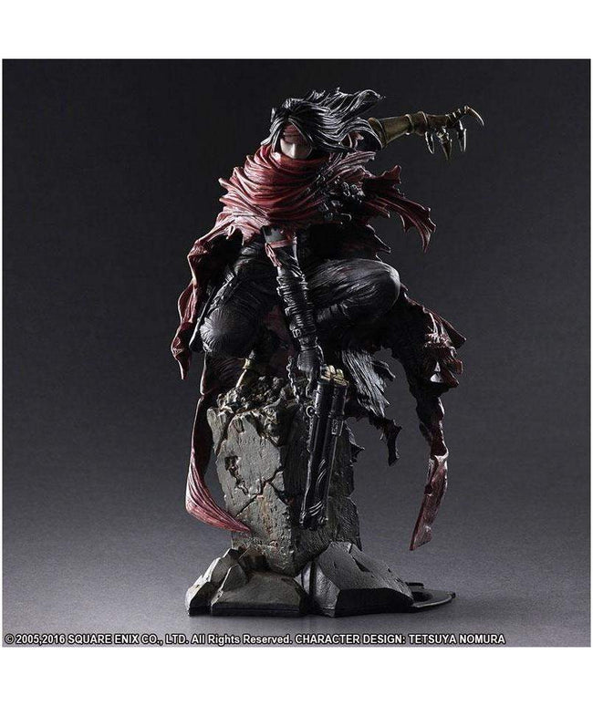 Vincent's inhuman skills are well captured by his pose, balanced onto a pile of rubble with the 3-muzzled Kerberos held in his hands and his long hair and cape flowing in the wind. The tridimensional sculpture pays attention to depth and is painted with finely contrasting colors that will be sure to leave a strong impression on whoever takes a look at it.