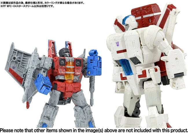 As seen in "Transformers: War for Cybertron -- Siege," Starscream now joins Takara Tomy's Premium Finish lineup! The leader of the aviation unit Jetron, he transforms into a jet fighter, and has an ambitious, brutal and ruthless personality, going so far as to betray Megatron many times. He features carefully applied weathering for that battle-worn look. Order him for your own collection today!