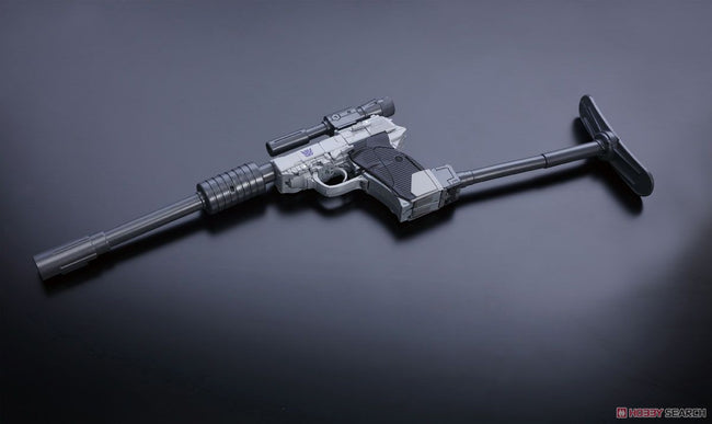 - The hand gun mode is almost real gun size, this item is three-dimensionalization with the silencer, stock equipped as well as animation like this, the particle beam cannon and telescopic laser cannon form which can be used in robot mode by combining them by combining them It is possible to reproduce, stock can be exhibited in the state that the body of the megatron is floated in the air by transforming it into a stand.