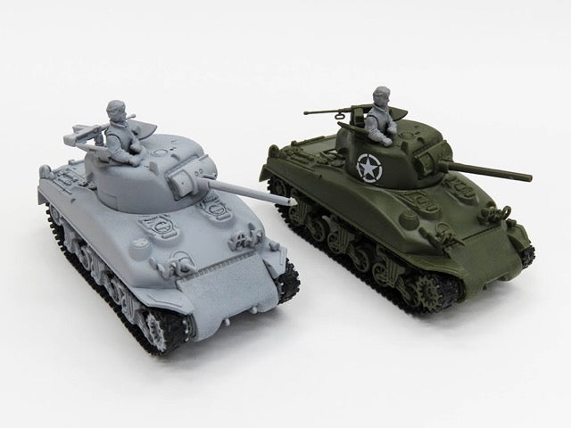 The M4 is a medium tank developed by the United States during World War II. It was provided not only to the U.S. but also to Allied countries and became one of the tanks representative of the war. Development started by using the body of the M3 medium tank, which had been in mass production since 1941, and equipping it with an all-around turret. In October, it was decided to formalize it as an M4 medium tank. Mass production began in February 1942, taking advantage of the industrial productivity of the United States. At that time, there were difference in specifications depending on the manufacturer ad other factors, and each was distinguished by a different model name. Among them, the first to start mass production was the M4A1, which adopted integrated casting for the upper hull. Compared to the M4, which had a welded body, there are fewer processes, so mass production started earlier, and it became the first mass-production model. In the initial version, the main gun is a 37.5 caliber 75mm tank gun M3. The engine was a Continental star nine-cylinder air-cooled gasoline engine. Three companies were in charge of production, and by November 1943 a total of more than 6,000 vehicles were produced.
