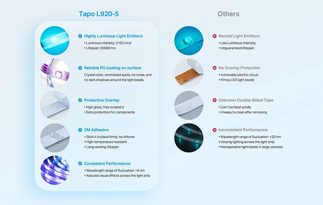TAPO By TP-Link L920-5 Smart LED Light Strip, 5M, WiFi App Control RGB Multicolour LED Strip, PU Coating for Outdoor Use