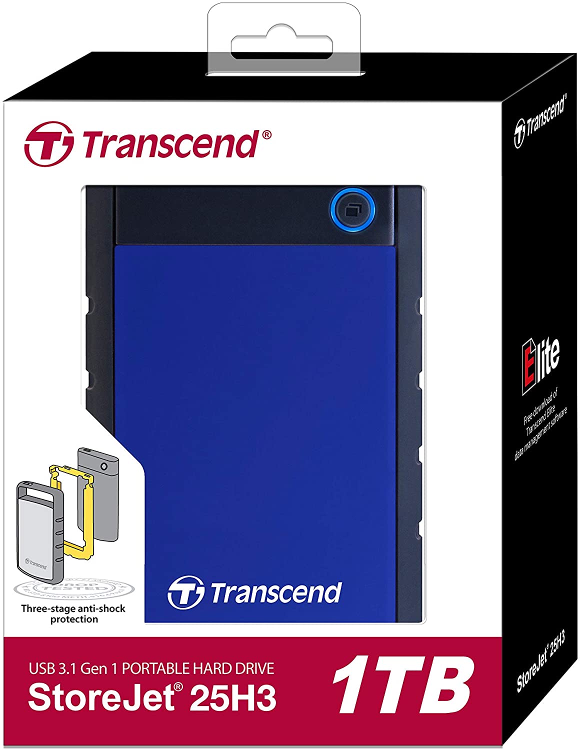 Transcend 1TB USB 3.1 H3 External Hard Drive (TS1TSJ25H3B) - Blue