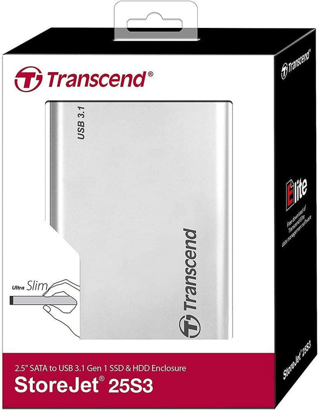 Transcend StoreJet 25CK3 2.5” SATA III SSD/HDD Enclosure Kit USB 3.1 Gen 1 TS0GSJ25CK3, Grey Transcend StoreJet USB 3.0 External Hard Drive Enclosure (TS0GSJ25S3) Transcend TS-RDF5K USB 3.1 SDHC/SDXC/microSDHC/SDXC Card Reader, Black