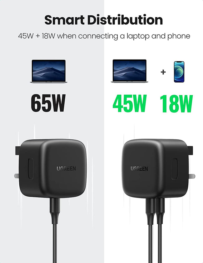 Universal CompatibilityThe 65W USB C wall charger plug with dual USB C ports is fully compatible with laptop, tablet, smartphone ,and more. |