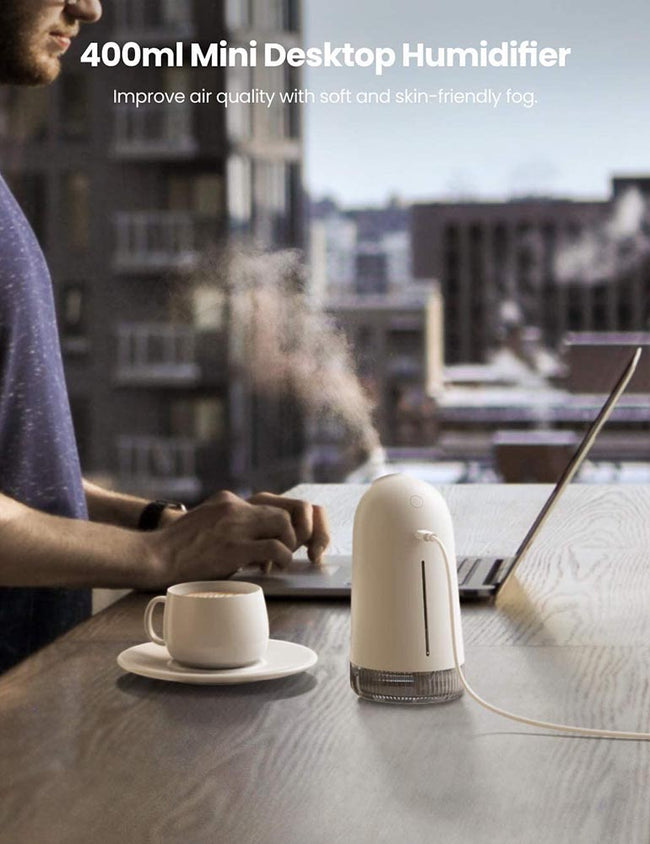 UGreen Mini Humidifier, 400ml Portable Cool Mist Humidifiers Super Quiet USB Desktop Humidifier with 2 Mist Modes, Auto Shut-Off