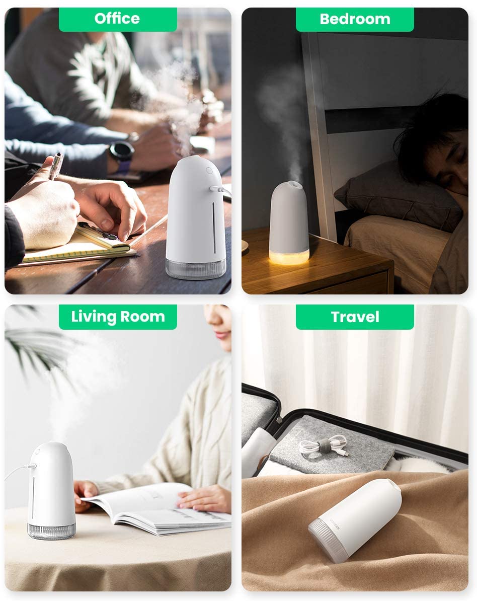 UGREEN mini humidifier is ideal for home, office, and portable for travel which effectively moisturizes dry skin and helps you reduce skin peeling and allows you to enjoy the fresh air in your home.