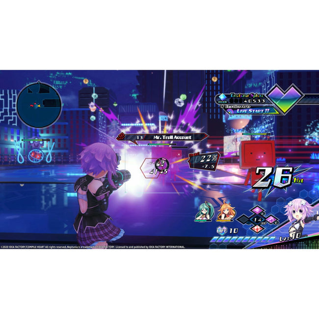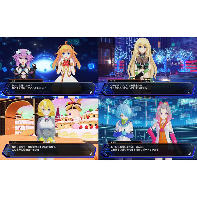 Fair, the Virtual Goddess, and the leader of Planet EMO sent out a distress signal to multiple dimensions in the hopes of a miracle. Two groups received the signal – the rising VTuber stars, Mi and Yu, members of MEWTRAL, as well as the Goddesses of Gamindustri: Neptune, Noire, Blanc, and Vert. Both parties, now entering unfamiliar terrain, decide to team up to duke it out against Anti! Can they band together and save planet EMO from complete destruction?