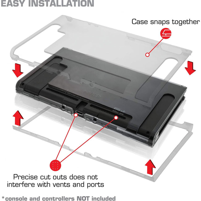 Keep the exterior of the Nintendo Switch and Joy-Con controllers protected with Nyko's Thin Case. Thin Case goes over the Joy-Cons and Nintendo Switch console to form a protective layer and does not obstruct any buttons, ports or the screen. The included tempered glass screen protector will help guard against damage to the screen. Adding a very minimal increase in size, Thin Case can be left attached when docking the Nintendo Switch. The Joy-Cons can be removed from the console without needing to take off Thin Case.Note: Nintendo Switch, Joy-Con, and Dock are not included.