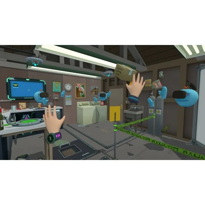 Rick and Morty have teleported into your living room for a cutting-edge VR adventure. Solve puzzles, step through portals into strange dimensions, get yelled at by Rick, fight aliens, drink detergent, press buttons, and more!
