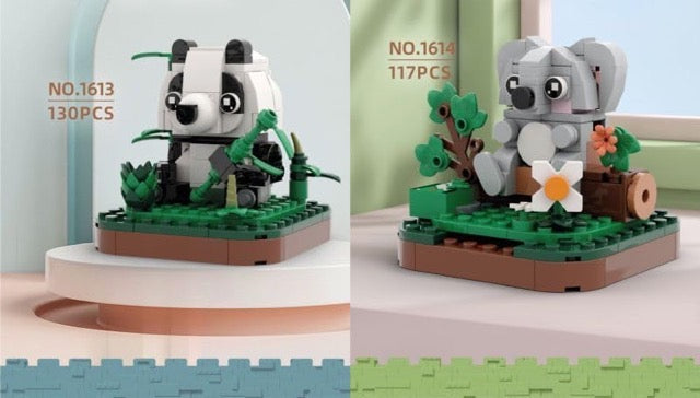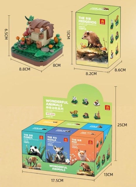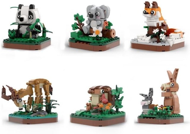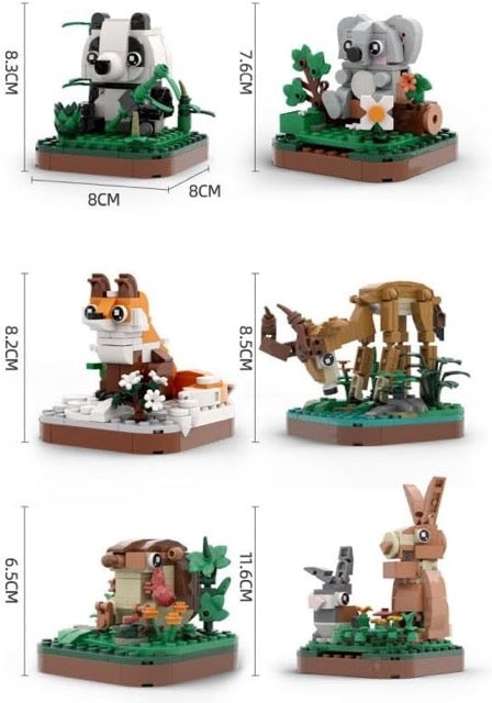 WANGE Building Blocks Animal Reproduction Set of 6 Animals - Panda Bear, Koala, Fox, Rabbit, Antelope and Hedgehog (1 Unit Only)