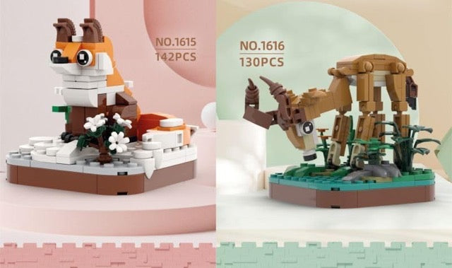 - Set of 6 individual kits to assemble different animals. Each kit contains a 80 x 80 mm base with plants, flowers or other small animals.