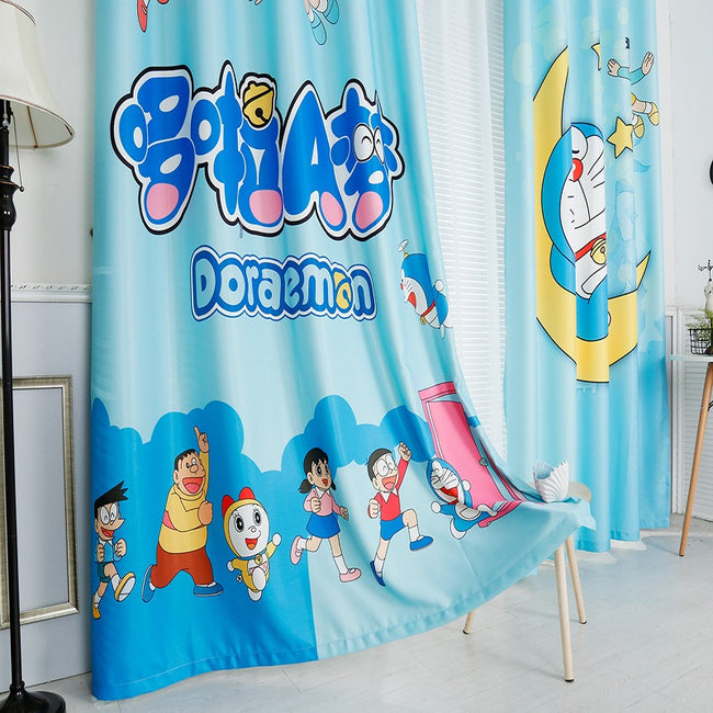 - Custom Made Grommet Curtain Doraemon & Moon - 2 panels (Sky Blue)