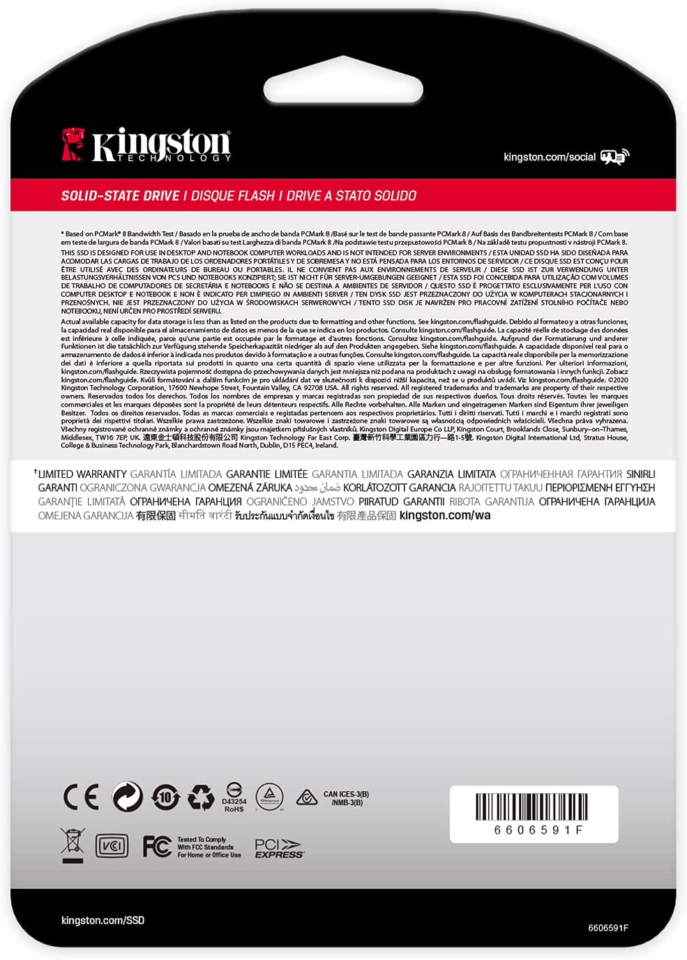 - Kingston Internal SSD NVMe NV1 1TB M.2 2280 PCIe Up to 2100 MB/s (SNVS/1000G)