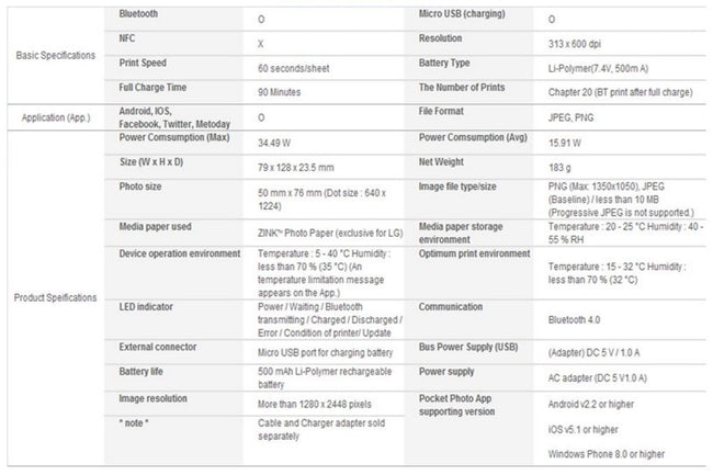 4) Media paper used : ZINKTM Photo Paper (exclusive for LG)