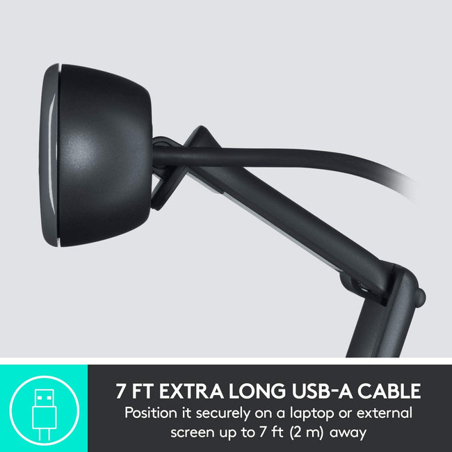 With its extra-long 7 ft/2 m USB-A cable and universal clip, C505 offers a wide range of versatile mounting possibilities. Go traditional and position it securely on a laptop or external screen, or get creative and mount it on a shelf or fixture up to 7 ft/2 m away from your computer.