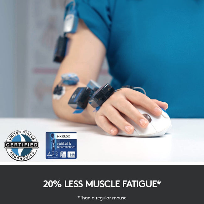Finally a trackball you can call your own. A unique adjustable hinge allows you to adjust the angle for personalized comfort and 20 percent less muscular strain.* With easy switching and navigation between two computers, MX Ergo helps you power through your workflow.